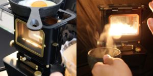 ストーブは地面に置きがちですが、IRON STOVEはコンパクトなので